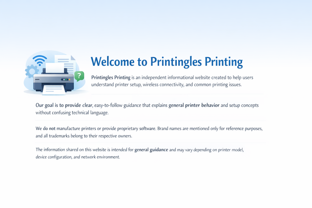 Printingles Printing is an independent informational website created to help users understand printer setup, wireless connectivity, and common printing issues.